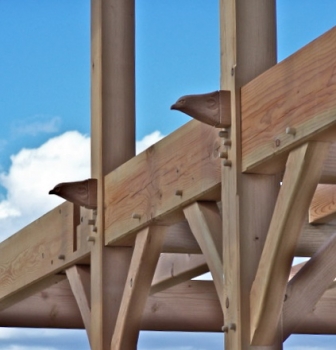We designed this home to have a classic barn feel. I always try to get homeowners to throw in some whimsy. This homeowner was not so willing, but I convinced him to just do these 4 birds heads, ( there are 2 on opposite side, all looking into the great room ) which are carved on the ends of the thru splines. He had a good friend offer to carve them for him, and the results were wonderful.